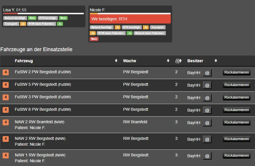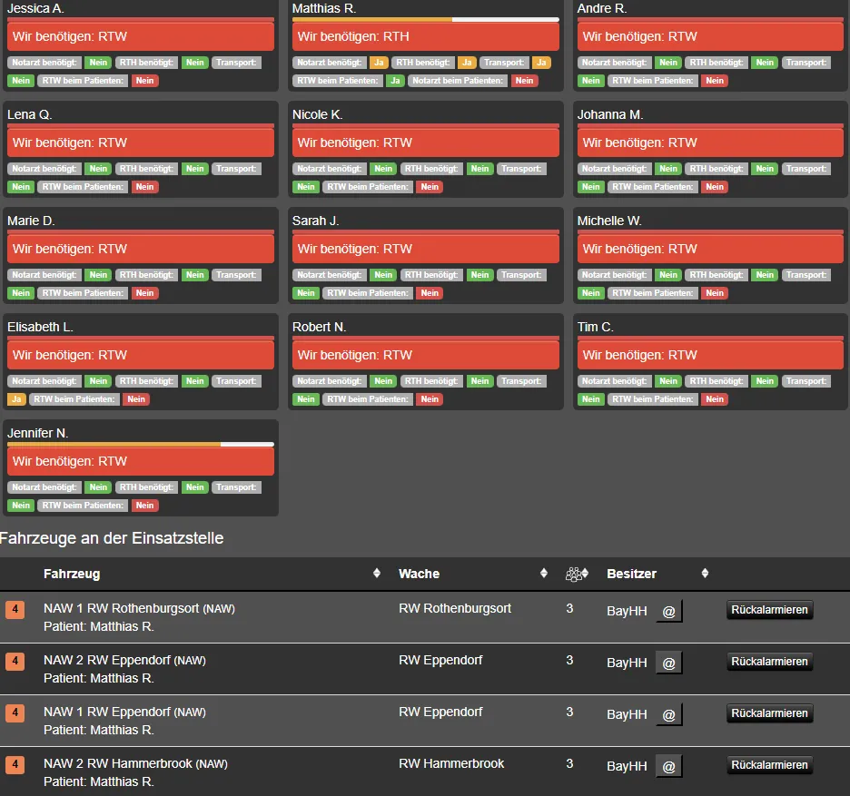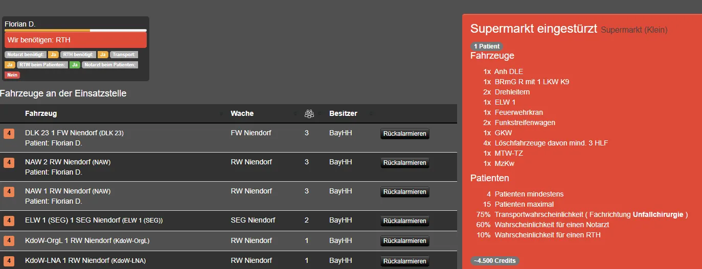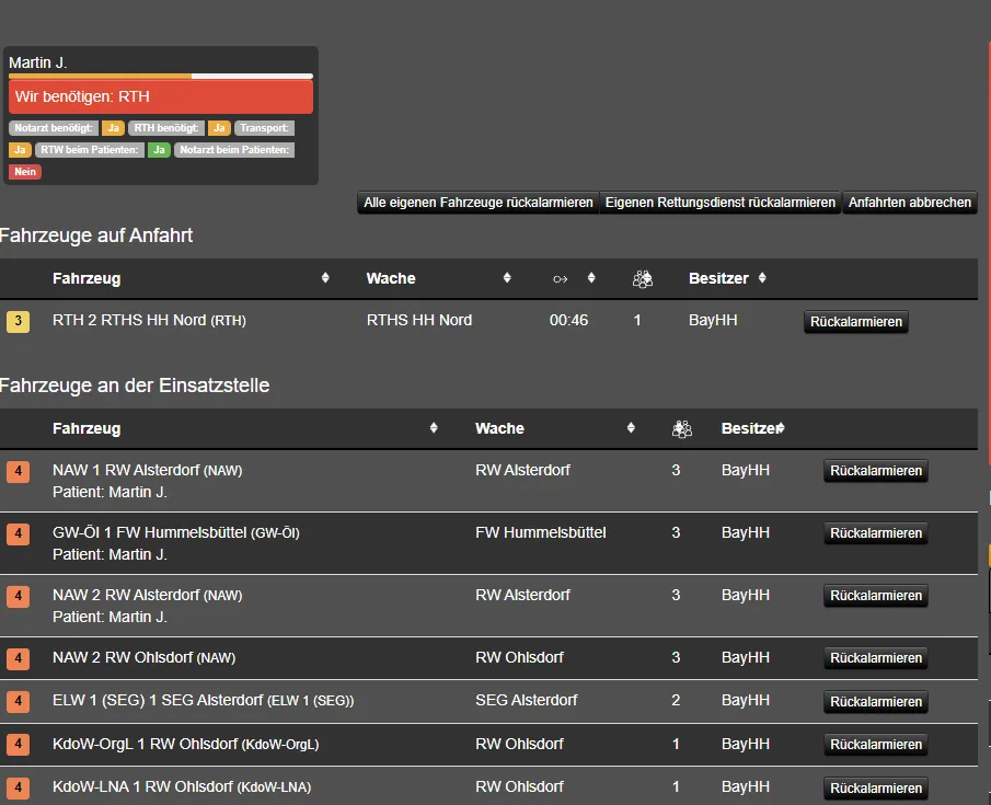 Habe ich schonmal erwähnt dass der Einsatz jetzt durchgehend neu berechnet bis ein RTH da ist und somit der Einsatz trotz aller benötigten Fahrzeuge vor Ort keine Einzige Sekunde abgearbeitet wird?
