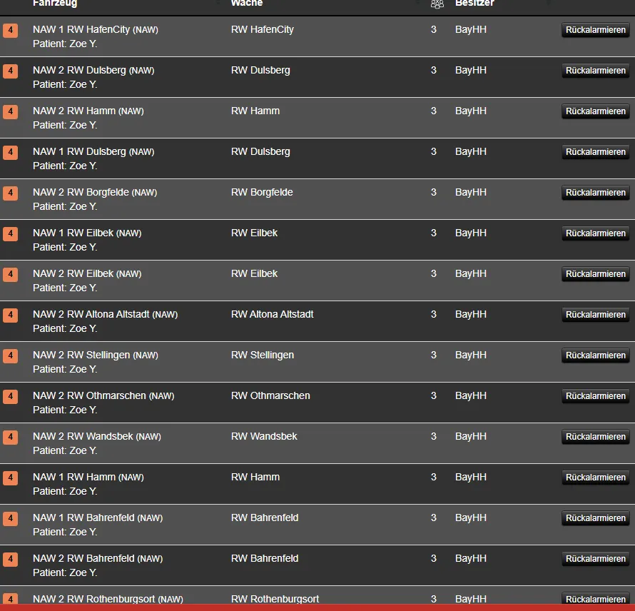 Ich habe vor kurzen alle RTH Stationen auf "nicht einsatzbereit" gestellt. Somit erscheinen keine RTH-Patienten mehr.
