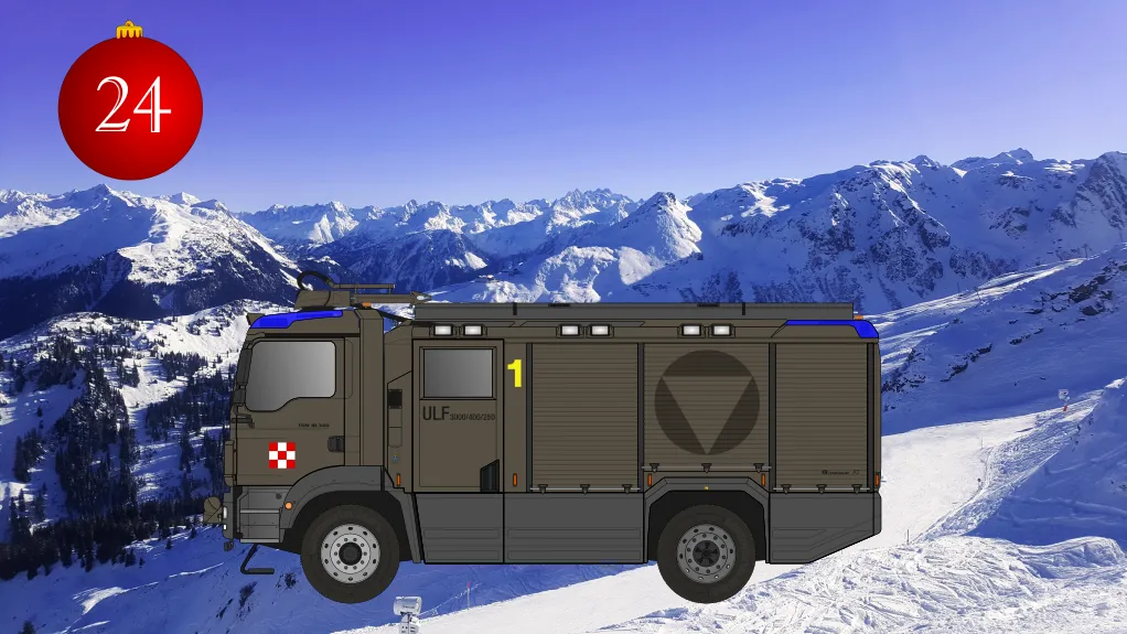 Zum 24. präsentierte ich euch das ULFA 3000/400/250 vom Österreichischen Bundesheer und im Hintergrund sind die schönen Vorarlberger Berge zu sehen!