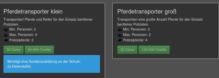 Bei Zugfahrzeug für den Hänger und dem großen Transporter musst das Personal eben an die Fahrzeuge fest binden -> Der Transporter hat eh nur 2 Sitzplätze bei 2 Pferden ... Also brauchst da immer ein Support Fahrzeug