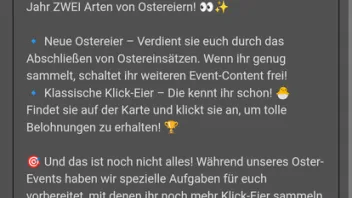 Zitat von SystemnachrichtKlassische Klick-Eier – Die kennt ihr schon! 🐣 Findet sie auf der Karte und klickt sie an, um tolle Belohnungen zu erhalten! 🏆