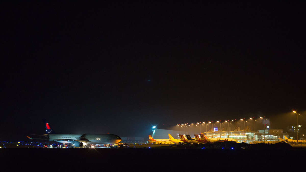 | Flugzeug von Start-/Landebahn angekommen | |