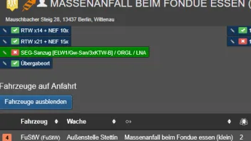 Im Bereich "Fahrzeuge auf Anfahrt" sind bei mir aktuell Fahrzeuge aufgelistet die eine Weiteralamierung zum selben Einsatz haben.