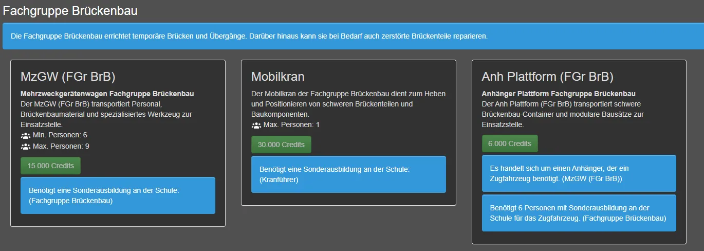 Wenn du Ideen dafür hast, gerne hier Vorschläge machen: Einsatzvorschläge Fachgruppe Brückenbau